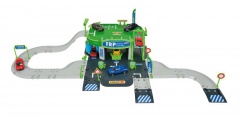 Súprava obsahuje oranžové autíčko Porsche kabriolet. Zjazdové garážové cesty sú dostatočne priestranné a parkovacie boxy sú očíslované a výťahom je možné autíčko vyviezť až na strechu garáže. Jazda dole je veľmi rýchla, pretože vozidlo ide z horného poschodia dole do výstupnej brány bez zastavenie.