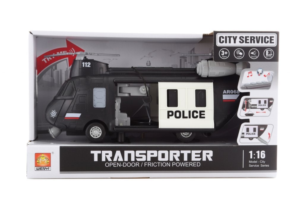 Policajná helikoptéra na batérie so svetlom a zvukom.