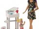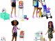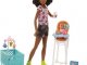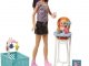 Opatrovateľka Barbie sa obliekla do pohodlného ležérneho oblečenia a trendy topánok a deti a bábätká sú oblečené do rozkošných oblečkov.