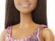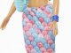 Za každým okienkom nájdu oblečky na denné alebo večerné nosenie alebo módny doplnok! Bábika Barbie má rovné hnedé vlasy a na sebe ružové plavky s metalickým efektom a potlačou.
