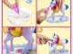 Naplňte fľašu vodou, umiestnite mláďa jednorožca na toaletný podložku a pomôžte Barbie bábike svoje zvieratko nakŕmiť.