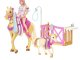 Inšpirujte deti k starostlivosti, tvorbe účesov a k priateľstvo s Barbie bábikou, dvoma koníky a množstvom doplnkov!