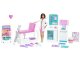 Klinika obsahuje lekárku Barbie® brunetku (30,4 cm) a 4 hracie plochy: ordináciu, vyšetrovací stôl, röntgenový prístroj a darčekový obchod.