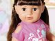 Staršie sestrička BABY born Soft Touch brunetka vo veľkosti 43 cm má na sebe tričko, sukienku, legíny a tenisky. Súčasťou balenia je fľaštička, kefa na vlasy, 2 gumičky, 4 sponky a 2 náramky priateľstva - jeden pre malú mamičku a jeden pre bábiku.