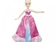 Vaša malá princezná Popoluške môže magicky premeniť jej pekne ružové šaty na žiarivo modré plesové šaty od jej kmotričky! Zatiahnite za nitku v zadnej časti šiat a zabaľte šaty spredu dozadu. Môžete si vybrať, jeké šaty si na seba Popoluška vezme. Pripevnite šaty a všetko je pripravené na ples!