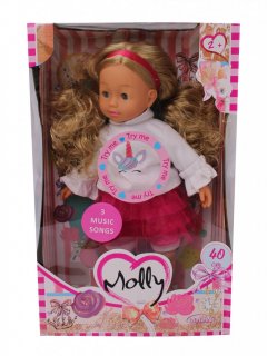Bábika Molly je 40 cm veľká, má vinylovú hlavičku, ruky a nohy.
