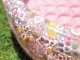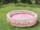 Detský bazén s rozmermi Ø 86 × 25 cm a mäkká nafukovacia podlaha, motívom kvetov. Výška vody cca 15cm