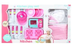 Plastová sada do kuchyne obsahuje odkvapkávač, hrnčeky, taniere, príbory, kuchynské náčinie.