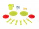 Plastová raňajková sada obsahuje kanvicu, toaster, kávovar a doplnky.