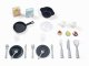 Súčasťou vybavenia je rajnica s pokrievkou, tanier, príbory, riad, makety obalov od jedla, hrnček, hrnček a panvicu.