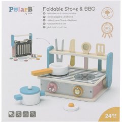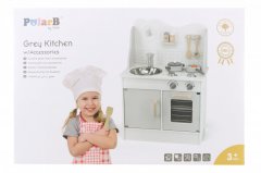 Drevená kuchynka s doplnkami o rozmere 60 × 81 × 30 cm.