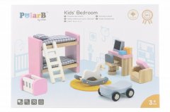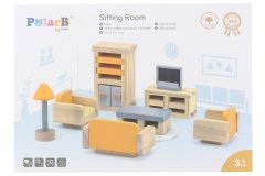 Drevený domček pre bábiky s rozmermi 730 mm x 1125 mm s dreveným nábytkom.