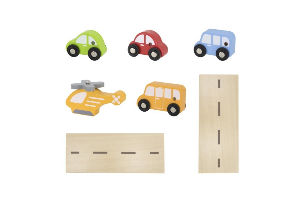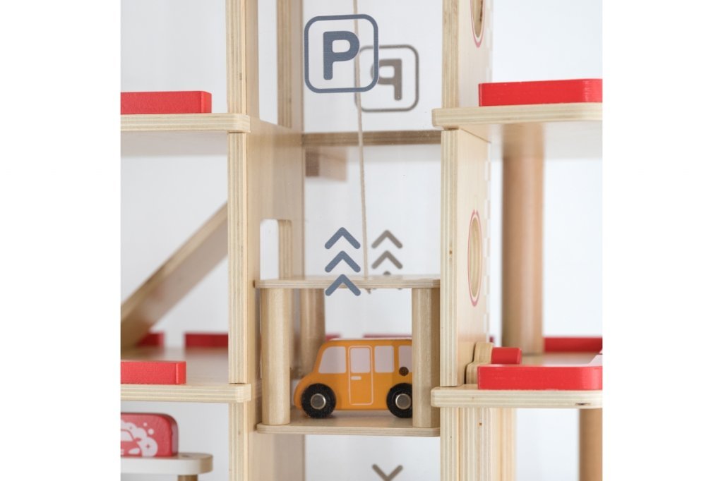 Súčasťou balenia 4 autíčka a helikoptéra, heliport, výťah, umývačka.