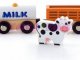 Drevená mašinka s 3 vagónmi a kravičkou.
