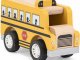 Drevený školský autobus o veľkosti cca 13 × 7,5 cm.