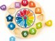 Detské náučné hodiny trénujú vnímavosť a pamäť, učia čísla, ktoré sú zapísané na blokoch, rovnako ako mená v angličtine pod každým z blokov.