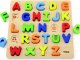 Drevená vkladačka s farebnými písmenami v slovenskom jazyku.