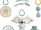 Táto podložka obsahuje oblúk so 6 odnímateľnými zmyslovými hračkami, vrátane prenosnej plyšovej koaly s jemným zvonením a kolotočom, ktoré je možné pripevniť ku kočíku a užiť si tak zábavu aj na cestách.