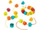 Farebné koráliky v tvare srdca, hviezdy, trojuholníka, kruhu a štvorca je možné navliekať na šnúrku či skladať na doske s otvormi do výšky.
