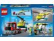Stavebnica Preprava záchranárskeho vrtuľníka od LEGO City zaujme ikonickým červeným nákladiakom s kĺbovým prívesom s plochou korbou a vyklápacími výstražnými svetlami, ale aj samotným modelom záchranárskeho vrtuľníka.