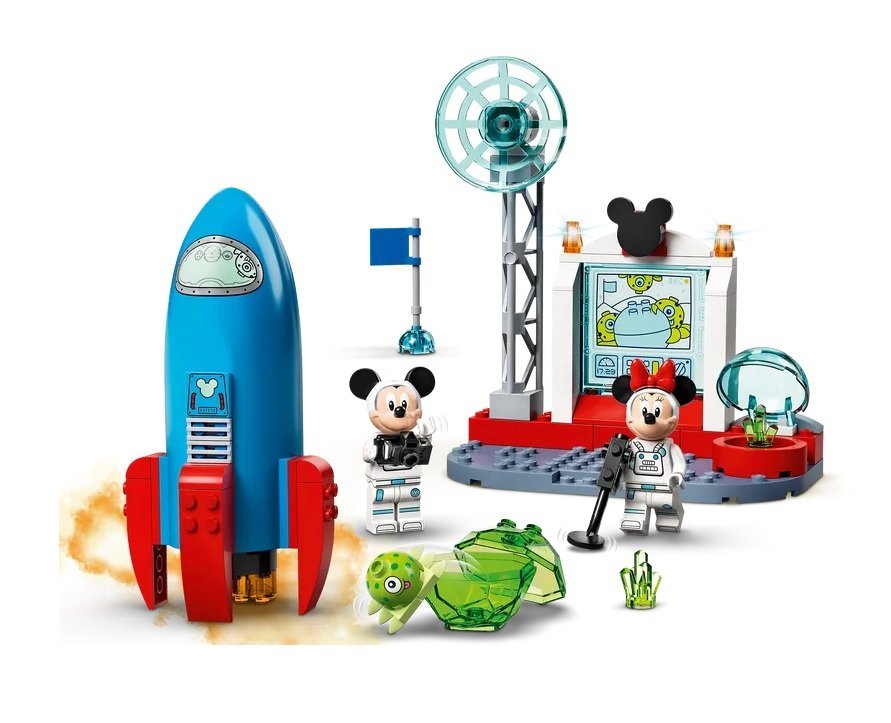 Stavebnica Disney Mickey a Myška Minnie ako kozmonauti ponúka deťom možnosť ponoriť sa do zábavného hrania rolí, rozvíjať svoje staviteľské schopnosti, lietať raketou a objavovať kúzla vesmíru.