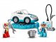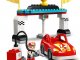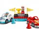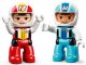 Súčasťou stavebnice sú DUPLO figúrky pretekára a pretekárky s prilbami, 2 autá s technológiou Push-and-Go a doplnky, vrátane trofeje, vlajok, nabíjacie stanice, kužeľov a výbavy pre údržbu áut.