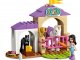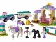 Stavebnica obsahuje auto LEGO Friends, príves pre kone, stajne s príslušenstvom pre česanie, prekážky a opraty, s ktorých pomocou môžu deti kone vodiť a učiť klusať.
