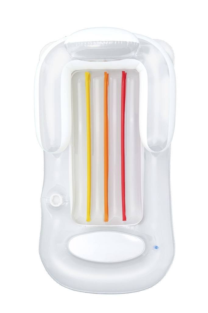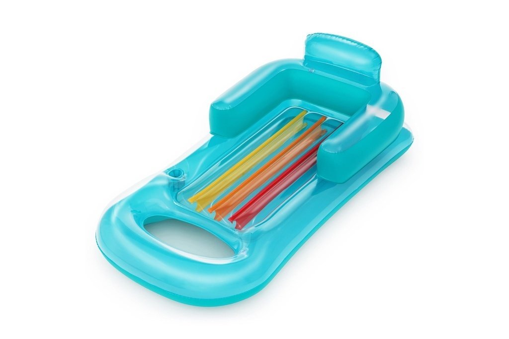 Nafukovacie lehátko o veľkosti 161 × 84 cm z masívneho vinylu. Matrac má dve vzduchové komory, držiak na pitie a pohodlné operadlo.