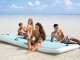Nafukovací matrac Lounge umožňuje niekoľkým ľuďom relaxovať na veľkej ploche.
