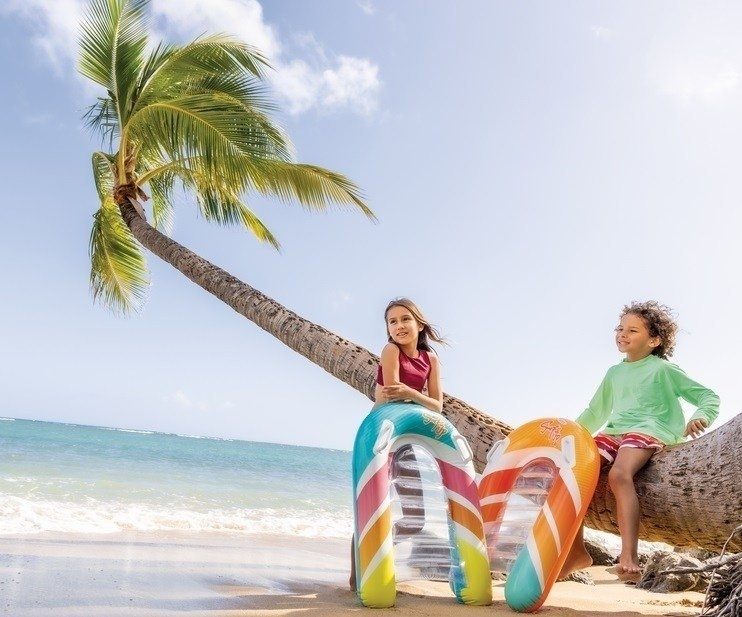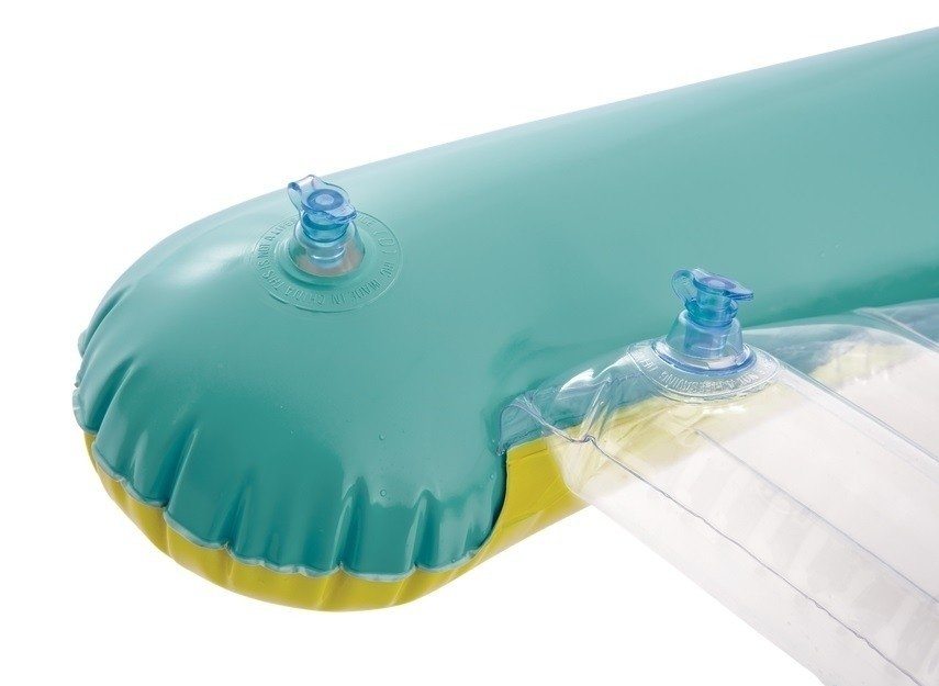 Nafukovacie lehátko s madlami Surf's Up Rider disponuje dvoma pevnými madlami pre lepšiu stabilitu a priehľadnú základňu, aby deti mohli pohodlne pozorovať svet pod nimi.
