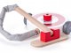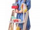 Čistiaci vozík vo drevenom prevedení má vstavaný vysávač, otvory pre mop a zmeták, lopatku, saponát a malý kefa na zvieracie chlpy.