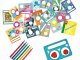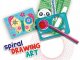 Spirálkové kreslenie. Dokončite 16 predtlačených kariet pomocou jedného z troch červených koliesok a rámčeka.