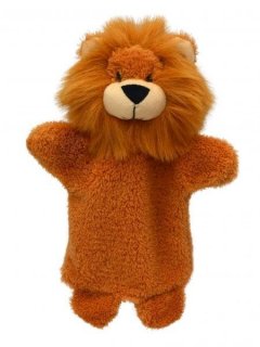 Textilná maňuška v podobe leva na ruku s mäkko pchané hlavou.