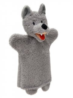 Textilná maňuška s nohami vlk. Výška cca 30 cm.