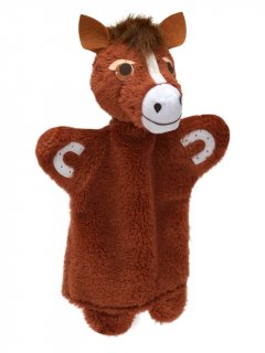 Textilná maňuška v podobe koňa na ruku s mäkko pchané hlavou.