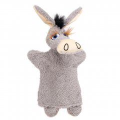 Maňuška na ruku z príjemného materiálu v podobe oslíka.