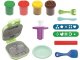 Modelína, v ktorej sú rôzne tvorítka a formičky na výrobu hamburgera.