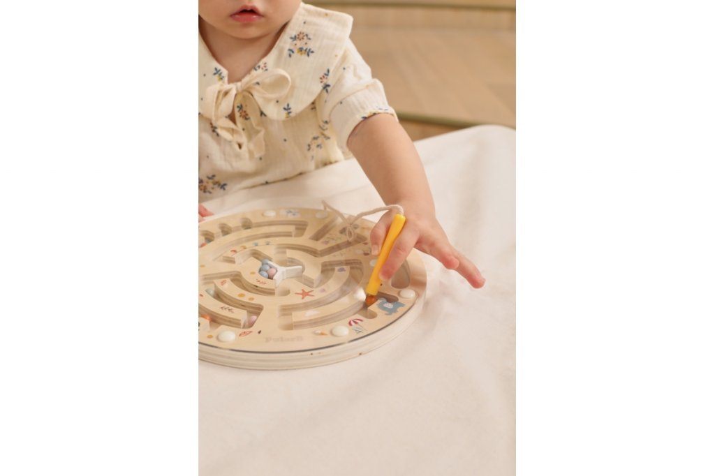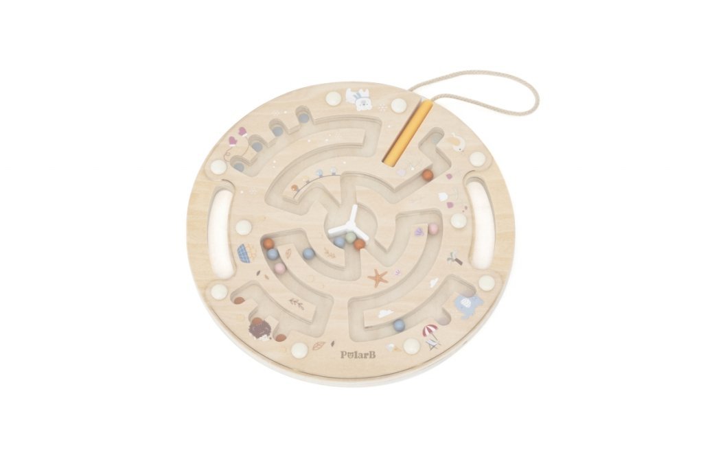 Pomocou magnetickej ceruzky deti posúvajú guličky v labyrinte.