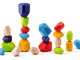Deti majú za úlohu postaviť na seba čo najviac drevených kameňov tak, aby veža z nich nespadla.