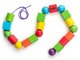 Set obsahuje drevené korále, ktoré sú veľkosťou prispôsobené zručnosti malých detí.