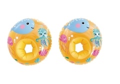 Veselé nafukovacie oválne rukávy v žltej farbe s obrázkami morských kamarátov.
