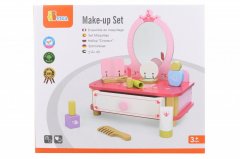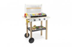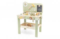 Drevená kuchynka, ktorá je ladená do bielej a ružovej farby je pripravená pre dievčatká, ktoré rady pripravujú jedlo, napríklad pre bábiky.