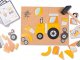 Drevené zatĺkanie obsahuje 5 kartičiek s motívom stavebných strojov a podľa tejto predlohy je nutné zostaviť na korkovú doštičku a zatĺcť.