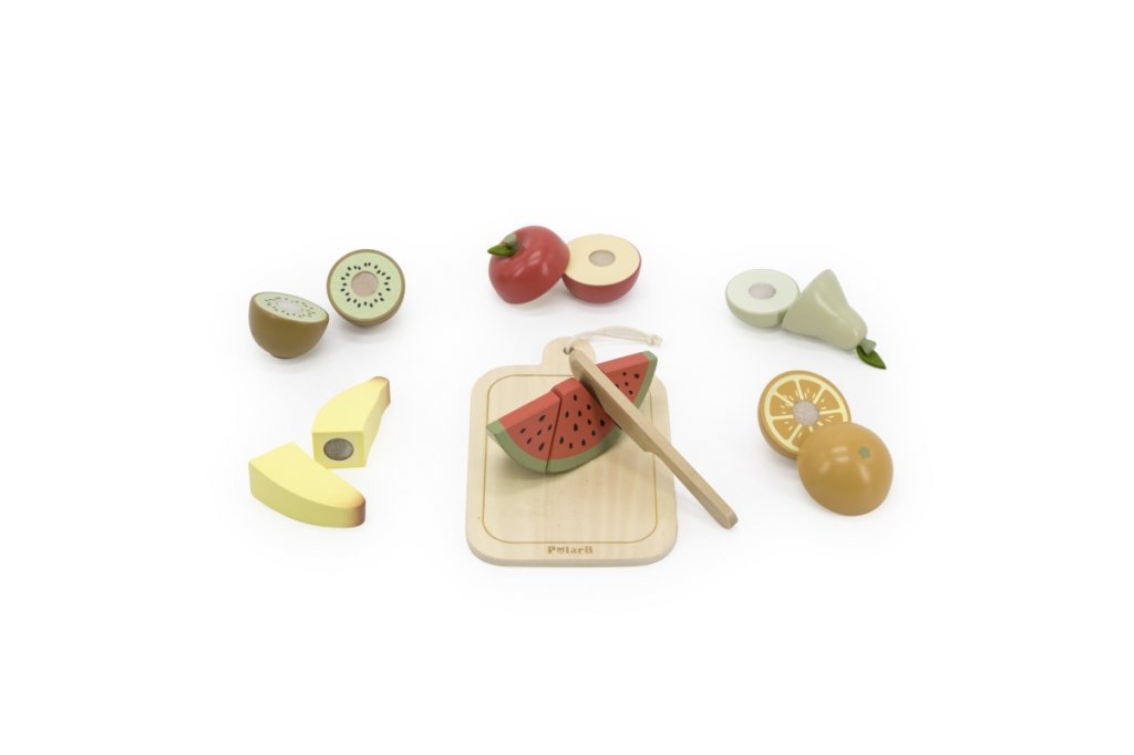Drevené krájanie ovocia na výučbu jemnej motoriky.