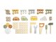 Tento pracovný stôl obsahuje rezací stroj, pravítko, skrutkovač, pílu, kladivo, kľúč, niekoľko skrutiek, matičiek, ozubených kolies a ďalšie kreatívne diely pre stave.