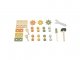 Drevený ponk s náradím obsahuje celkom 30 dielikov, ako napr. skrutky, matice, kladivko alebo kľúč.