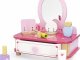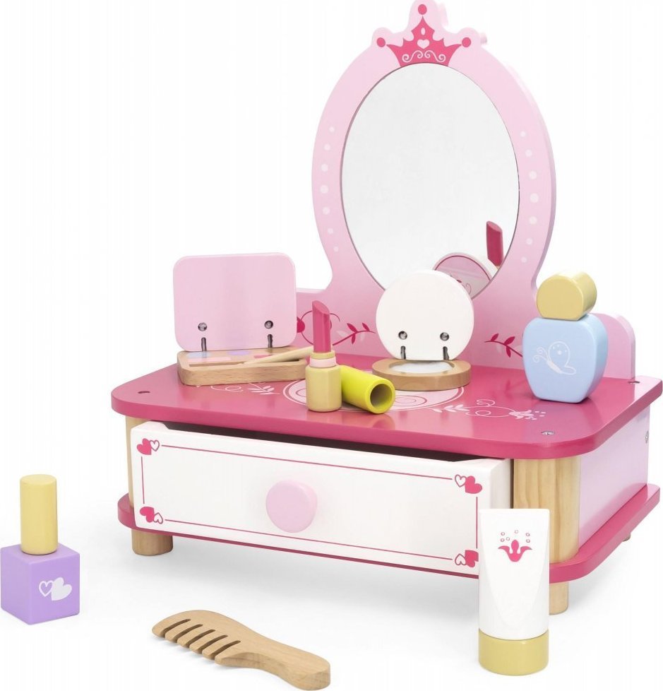 Drevený toaletný stolík s doplnkami.