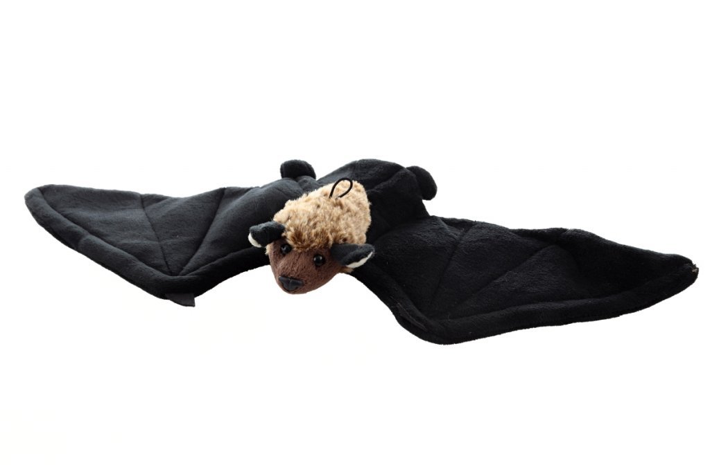 Plyšový netopier s rozmermi 45×19×6 cm.