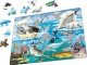 Detské doskové edukatívne puzzle s kreslenými obyvateľmi mrazivé Arktídy.