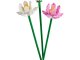 Táto LEGO interpretácia celosvetovo uznávanej kvety vyobrazuje 2 lotosy v plnom rozkvete a púčiku, všetko v delikátnych odtieňoch bielej a ružové s dlhými zelenými stonkami na vystavovanie vo váze.